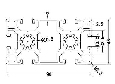 | Resaltar | Perfil de aluminio de encargo de la protuberancia,extrusión de aleación de aluminio industrial,Perfil de extrusión de metal 45x90 |